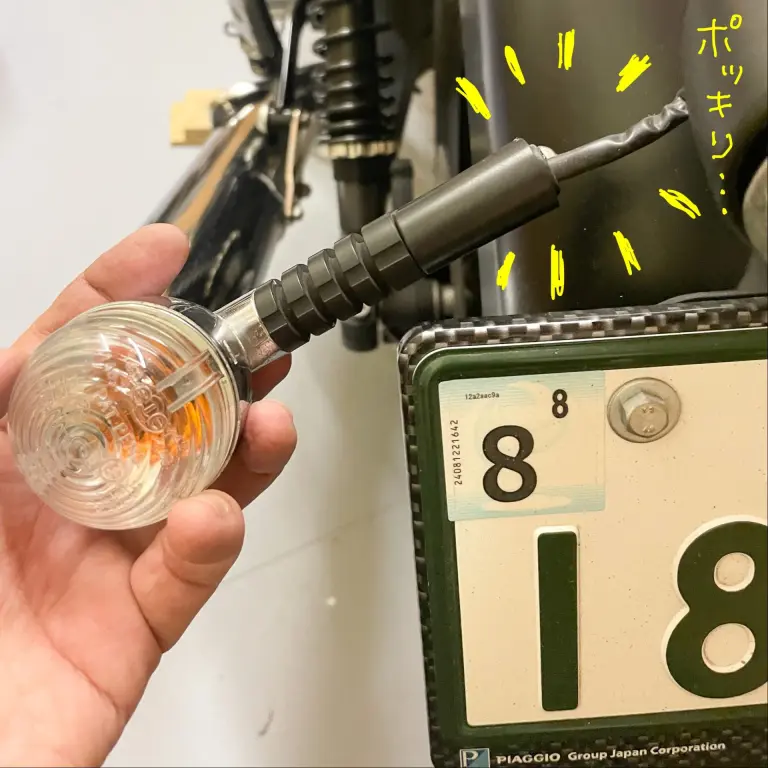 我が家で唯一高速道路に乗れるモトグッツィさんの左後ろ方向指示器が振動でポッキリいってまして動けませんでした。