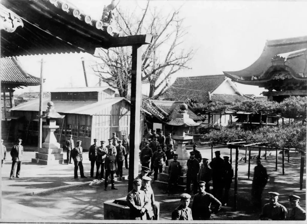 そこで捕らえたドイツ兵のうち324人が丸亀に送られ、一部将校は船頭町(現西本町)の看護婦養成学校に、ほか大半は塩屋別院に収容されました。