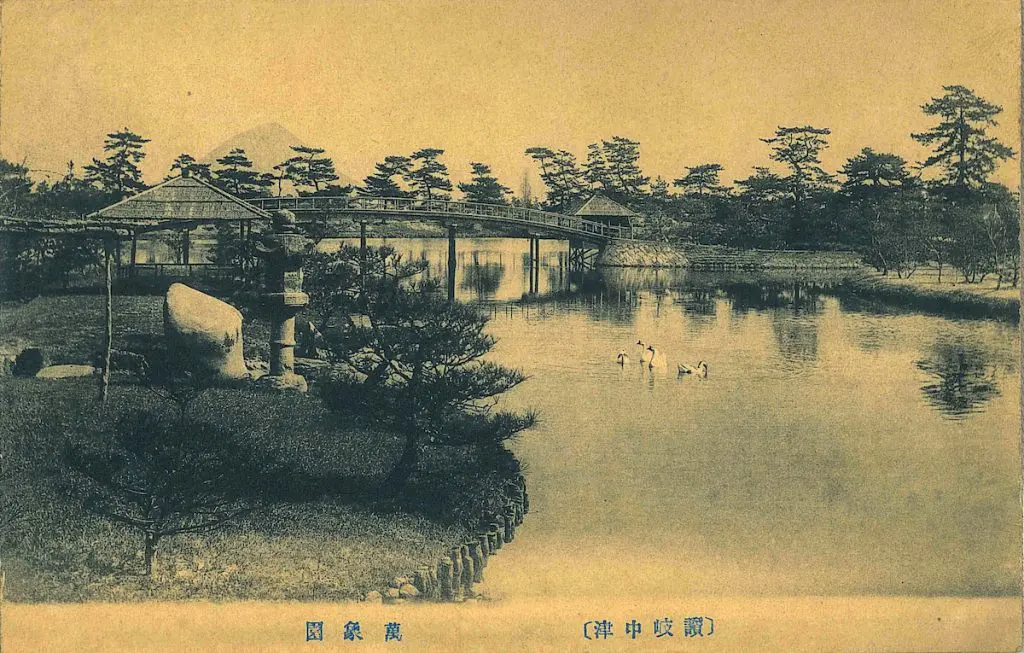 今では万象園本館の奥に先っちょがチョロっと見える程度の讃岐富士ですが、かつては遮るものも無く、堂々とした姿を見せていました。