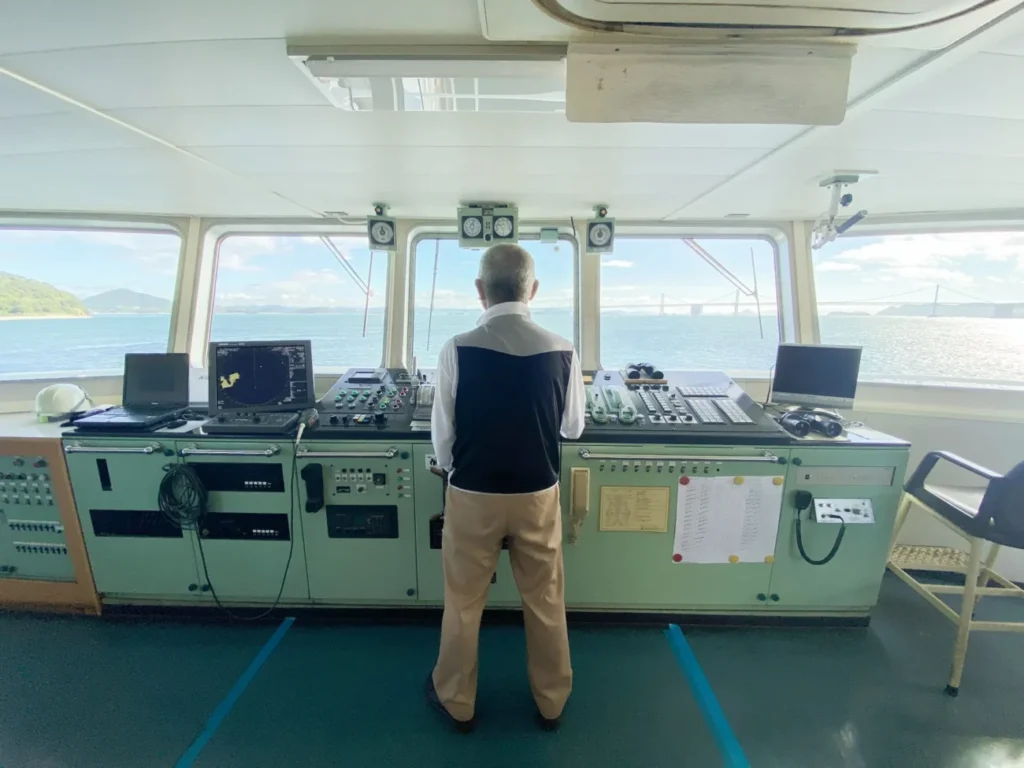 操縦室には航海士が2人、交替で操縦しているそうです。