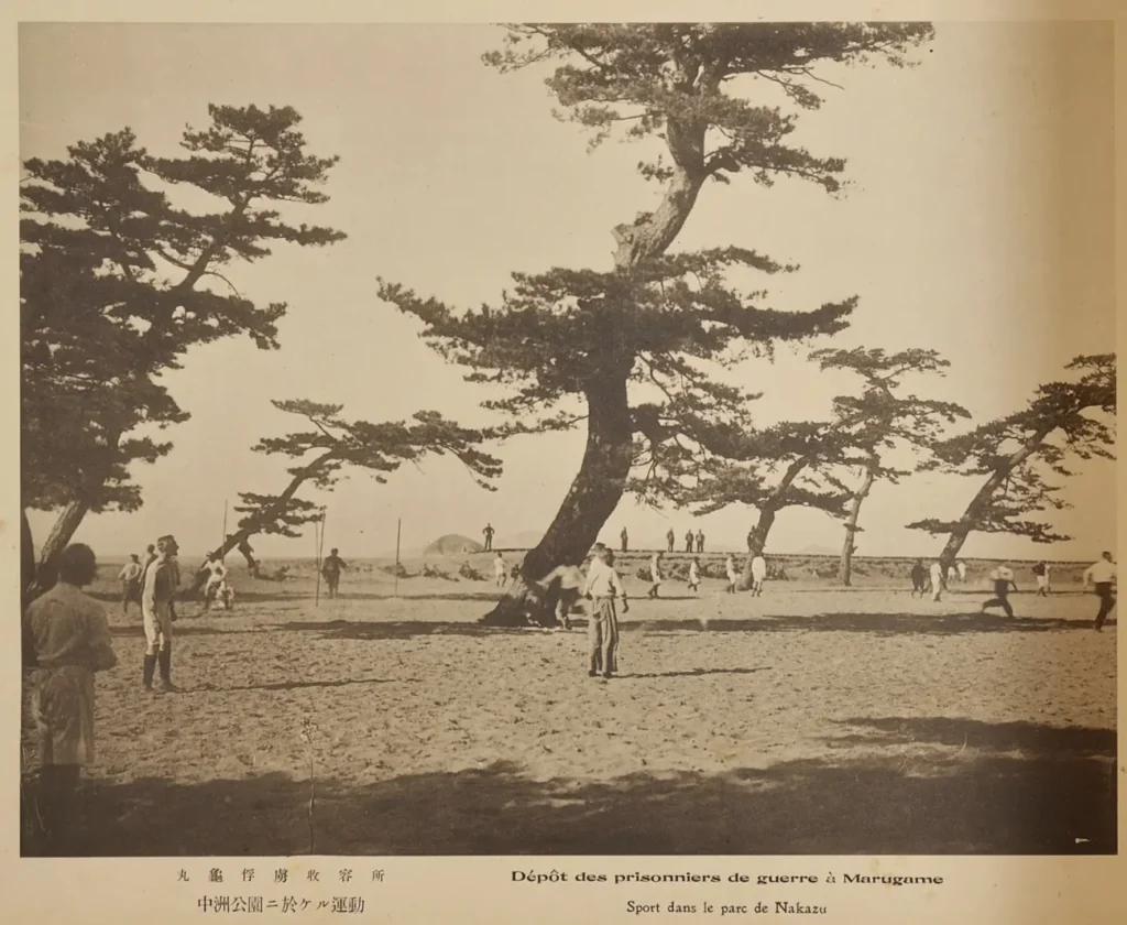 大正時代の第一次世界大戦後には、塩屋別院に収容されたドイツ人俘虜たちの運動場として使われていて、彼らが万象園内で「シュラークバル」というドイツ式野球に興じていたことが記録に残っています。