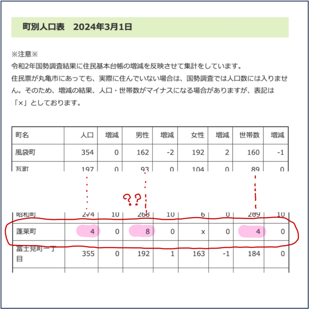 総人口4名(!)うち男性が8名(!!!)。まー凡ミスでしょうね笑。