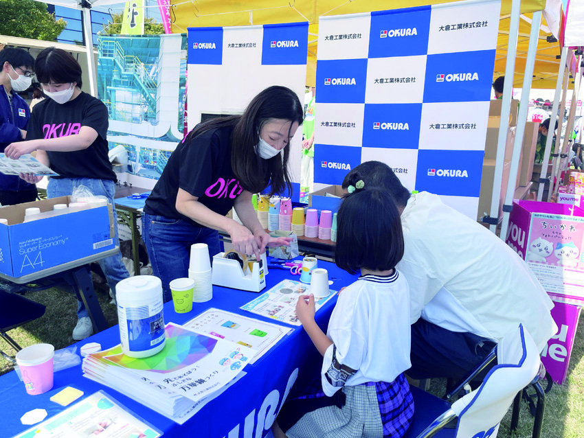 同クラブ主催の「ワクワク体験Kids王国in丸亀」では、新規材料事業部の光学フィルムを使った万華鏡づくり体験を出店しました。