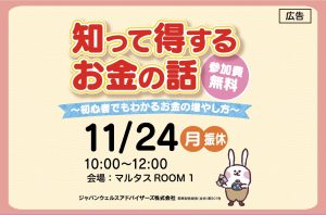 コラム2025年11月19日【セミナーのお知らせ】参加無料・知って得するお金の話
