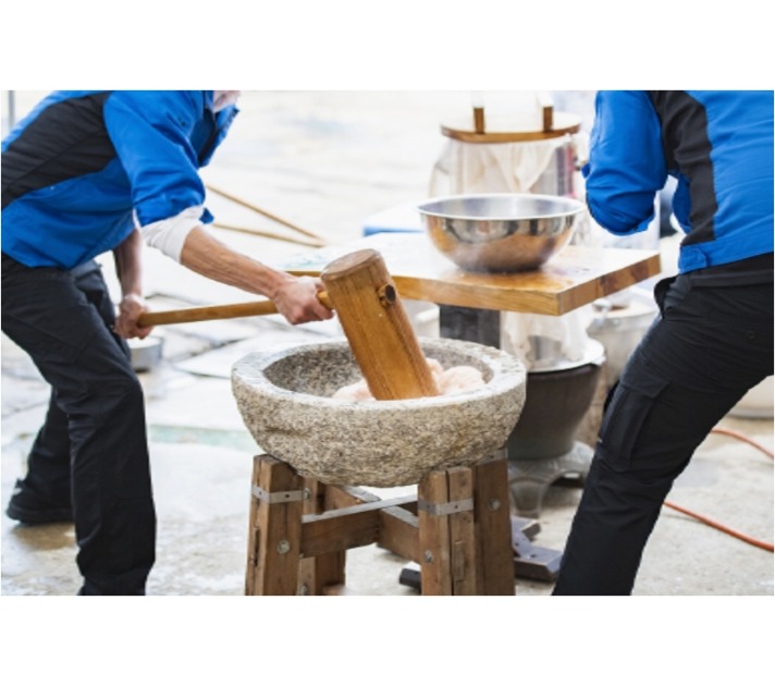新年の清々しいスタートとして、飯野山でもちつき体験!今では少なくなった杵と臼を使った本格的なもちつき。みんなでついて丸めて食べるところまで楽しみます。