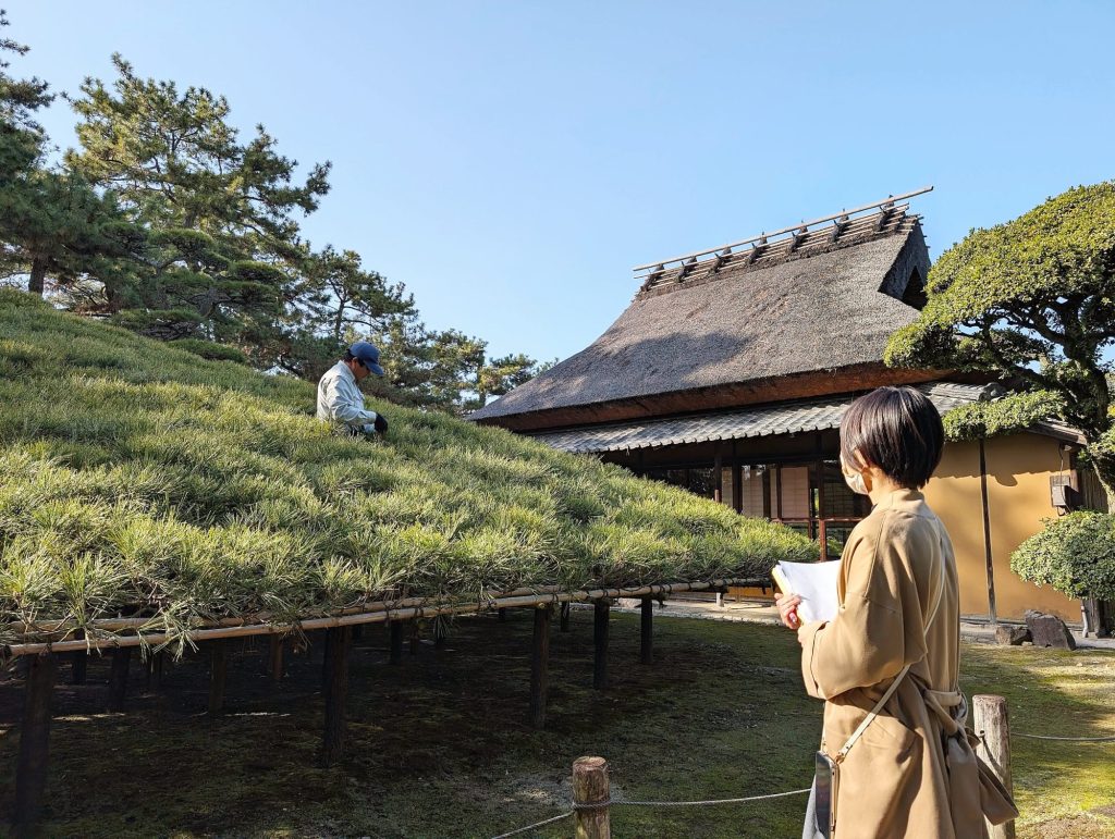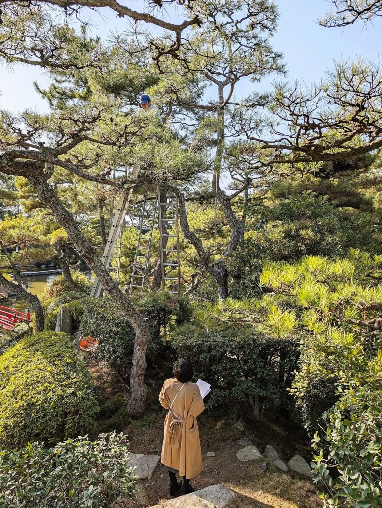 現在、中津万象園では、5人のお庭さん(庭師)が、広さ◯に及ぶ広大な大名庭園のお手入れをしています。これは、現存する他の大名庭園と比べても、かなり少数精鋭の部類だそうです。