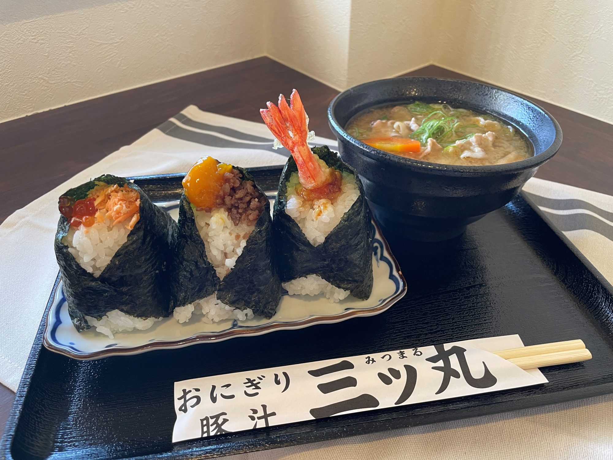 天満町におにぎり専門店オープン ふわふわの豚肉が乗った豚汁も◎